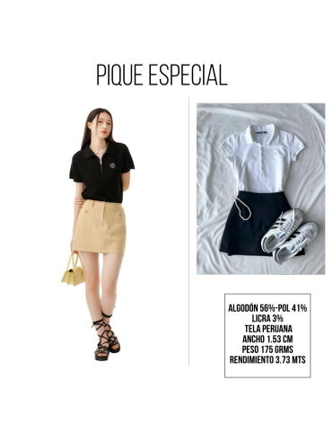 TELA PIQUE LICRA PERUANAPique algodón-licra peruano especial para camisetas polo.